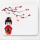 Alfombrilla De Ratón Muñeca de Kokeshi bajo rama de Sakura