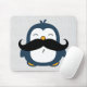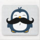 Un lindo pingüino azul chubby con un enorme bigote negro de moda.