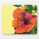 Diseño acuático del artista Sacha Grossel de hibiscus naranja tropical. Colores brillantes o naranja y verde. Temas de arte de flores tropicales