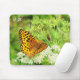 Alfombrilla De Ratón Naranja y mariposa negra descansando en flor blanc