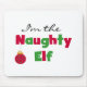 Camisetas traviesas, naipes, mousepads, imanes, bolsas de té y otros artículos con texto rojo y verde con un adorno navideño colgado del texto. Si buscas una camiseta divertida, humorística o cualquier otro objeto, ¡esto es perfecto!