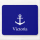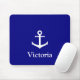Alfombrilla De Ratón Nautical Naval Blue and White Name Text con ancla