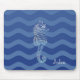 Alfombrilla De Ratón Nautical Navy Blue Stripe Waves Seahorse