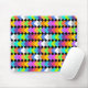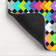 Esta almohadilla del ratón tiene un diseño geométrico de diamantes de neón que se superponen en un campo de negro.