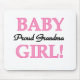Abuela orgullosa de una niña camisas, patas, tazas, tarjetas, pegatinas, bolsos de té, imanes, cadenas de claves y otras orgullosas prendas de vestir y artículos de regalo de la abuela con texto rosa y negro.