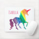La acuarela fresca personalizada del unicornio del arco iris embroma el cojín de ratón. Personalice esta diversión y mousepad colorido del unicornio en fuente rosada brillante. Silueta del unicornio en un arco iris de las pinceladas de la acuarela de rojo, de anaranjado, de amarillo, de verde, el azul y la púrpura. El fondo blanco deja los colores brillantes destacarse maravillosamente. Regalo de la diversión para los niños, tweenes, y adolescencias que aman unicornios y a criaturas mágicas. Colorido, moderno y elegante.