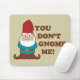 Un lindo gnomo con el divertido juego de palabras "No me jodas". Gorra rojo, camisa azul, zapatos marrones.