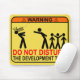 Mousepad divertido con el texto, "CUIDADO. NO PERTURBE AL EQUIPO DE DESARROLLO"