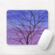 Una pintura acuarela ACEO de una elegante silueta de árbol de invierno contra los más profundos tonos rosa, morado y azul del cielo crepúsculo de la noche.