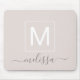 Alfombrilla De Ratón Nombre de monograma beige moderno de moda