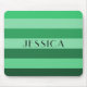 Almohadilla del ratón con un nuevo patrón de rayas monocromáticas de color verde con un nombre personalizado impreso en el centro. Escriba su nombre en el campo plantilla. Accesorios de cómputo compatibles disponibles en el almacén de patrones de puntos y rayas.