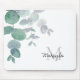 Esta almohadilla botánica del ratón presenta una vegetación eucaliptus acuarela en tonos verdes suaves sobre un fondo blanco. Personalizar con su nombre y monograma. Acuarela original © Michele Davies.