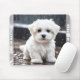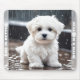Cute Mouse Pad con una adorable cachorro de color de agua maltesa bajo la lluvia. Hace un lindo obsequio de medias personalizado o regalo de cumpleaños para los niños y todos los amantes del perro. Personalice fácilmente el texto o déjelo en blanco. - Kate Eden Art