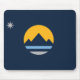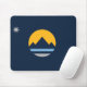 Mousepad con la nueva bandera de la ciudad de Reno, Nevada; bandera azul oscuro con sol amarillo y montañas azules en el centro