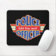 ¡Regalo del oficial de policía con área de texto de encargo que usted puede corregir para añadirle conocido, nombre de departamento o número! ¡Texto del oficial de policía en colores rojos, blancos, azules y amarillos con el fondo a juego de la barra! ¡el centro del diseño es un rectángulo rojo que usted puede corregir el texto! ¡Cree un regalo de encargo para su oficial de policía preferido! ¡grande para las familias de la aplicación de ley, cree una mamá del oficial de policía, un papá, un diseño del hijo y más!
