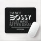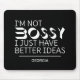 Este mousepad es perfecto para todas las mujeres ambiciosas. Si eres el tipo de persona que siempre está llena de grandes ideas, entonces necesitas este ratón sobre tu escritorio. Declara audazmente: "No soy caprichoso, sólo tengo mejores ideas", marcando el tono de su jornada laboral. También es un regalo perfecto para su amigo o colega que tiene la misma actitud de asumir el cargo. Seguramente traerá una sonrisa a su cara y un sentido del humor a su área de trabajo. Ya sea que trabajes en una oficina o desde tu casa, este gracioso mousepad es una excelente manera de mostrar tu confianza y hacer saber a todos quién está a cargo.