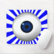 Béisbol azul. ¡Dios mío, me está mirando! Un ojo azul divertido y genial. Un verdadero testigo ocular.