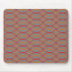 Esta almohadilla del ratón tiene un diseño Boho de ondas naranjas y rojas en un campo de gris.