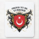 Diseño fresco del escudo con la bandera nacional de los colores y del subtítulo de Turquía: Orgulloso ser turco. Gran regalo turco del orgullo.