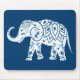 Stunning ethnic art mousepad with decorative henna tattoo style elephant on dark blue background. Option to customize background color.