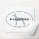 Letras gigantes que deletrean Manchester para hacer juego el corazón gigante de esta de Manchester Terrier raza del perro. Incluye una silueta llena hermosa del tiro del cuerpo de esta raza maravillosa del perro.