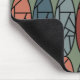 Esta almohadilla de ratón tiene un diseño art deco de óvalos con diseños abstractos dentro de cada uno de los colores retro de rosa y azul.