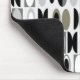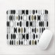Esta almohadilla de ratón tiene un diseño art deco hecho de ovales y medias ovalaciones en negro, blanco y tonos grises.