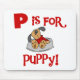 El texto rojo dice "P es para Puppy" en estas lindas camisetas de diseño de cachorros, tazas, bolsas de té, tarjetas y más, ¡genial para cualquiera de cualquier edad que ame a los perros!