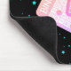 Almohadilla de ratón de bingo rosa fondo negro con tarjetas de Bingo rosado y estrellas con pequeñas estrellas azules. Haría un gran regalo.