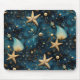 Una almohadilla de ratón con un elegante patrón azul con estrella de mar, representando el océano.