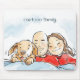 Este mousepad tiene el ilustracion de un adorable cachorro y sus padres, un calvo y una morena. Puede personalizar del texto.