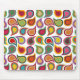 Esta almohadilla de ratón tiene un diseño moderno de mediados de siglo de paisleys enlosados unos encima de otros en colores retro.