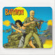 De las páginas de la serie de historietas Battron de Caliber Comic se desprende esta imagen de Battron enfrentándose al enemigo en el desierto.