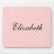 Panel de ratón monograma de nombre personalizado | Impresión de cuatrefoil rosado. Diseño elegante con nombre personalizado o letras iniciales monogramadas. Moderna moda preppy de fondo rosa con elegante fuente.