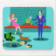 Este par retro con el perro Mousepad parece una escena fuera de una comedia romántica. El estilo de los años 60, características del diseño minimalistas del arte un par atractivo que disfruta de una igualación romántica en casa. El cuarto sofisticado ofrece prominente la aguamarina y la chimenea verde azulada del ladrillo con una repisa roja brillante. Un hermoso, mujer del redhead que lleva un brillante, vestido del rosa se encarama en la repisa. Ella está gozando de un martini con una aceituna flotante, un fuego del rugido, buena música, y la compañía un hombre alto, oscuro y hermoso. El hombre está llevando un juego azul y un lazo rojo. Su vidrio de martini se aumenta para tostar a su compañero encantador. En su otra mano, él está sosteniendo un álbum de disco de vinilo. En sus pies, vemos un dachshund más adorable el llevar de un cuello rojo. El perro juguetón de la salchicha de Frankfurt está caminando en dirección de un tocadiscos verde con el naranja, piernas del eje. En el piso, hay un grupo colorido de diversión, ecléctico, discos de vinilo. ¡Alegrías! Aquí está a la igualación perfecta en casa.