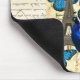 moda de bonito elegante collage digital romántico femenino de un pájaro pavo real y mariposas azules y torre eiffel , París, Francia sobre un fondo vintage de papel postal y sello francés con flores de oro de lys. copyright Oconnart