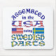 La imagen muestra ambas banderas de EE. UU. y Suecia. Se lee: "Ensemblado en EE. UU. utilizando partes suecos". Siempre divertido y genial para reír para aquellos con sentido del humor. Divertido para compartir tus raíces, herencias, ascendencias y culturas suecas y estadounidenses. Genial para reuniones familiares y clubes culturales, también.