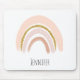 Una almohadilla de ratón con un ilustracion arco iris bonito y elegante. Los tonos rosa pastel y el purpurina de oro falso componen este bonito y pequeño diseño de arco iris.