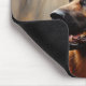 Un perro pastor alemán, con un collar de cuero negro, se sienta en medio de un lecho de hojas caídas del otoño. La piel del perro es una mezcla de marrón y negro, y sus ojos están alerta y enfocados. El fondo es un suave soplo de tonos dorados y marrones, lo que sugiere un entorno forestal. El ambiente general de la imagen es tranquilo y acogedor, con un perro relajado y contento en su entorno. Un regalo perfecto para los amantes del pastor alemán.