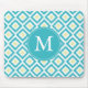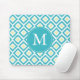 Alfombrilla De Ratón Patrón de Aqua monogramado y Ikat amarillo