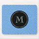 Alfombrilla De Ratón Patrón de cheurón azul monograma