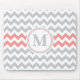 Alfombrilla De Ratón Patrón de Chevron gris rosado con monograma