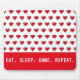 Esta alfombra de ratón de estilo retro es un gran regalo para los amantes de los videojuegos. El diseño presenta un patrón cardíaco rojo de 8 bits con el texto "eat. sleep. game. Repeat". La redacción puede cambiarse a la que prefiera.