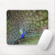 Este pavo real azulverde iridiscente aviva su cola en esplendor completo.