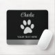 Alfombrilla De Ratón Paw de perro plateado sobre fondo negro