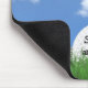 Balón de golf blanco en césped verde con club de golf y fondo de cielo. Se puede cambiar el texto.