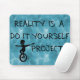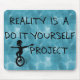 Un tonto de mueca en un unicycle lleva el mensaje que la "realidad es A la hace usted mismo proyecto." El gran regalo para un alcohol de pensamiento independiente, libre, o lo compra como recordatorio para pensar para sí mismo.