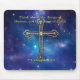 Cruz de oro plateado entre estrellas brillantes con diseño de tipografía.