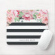 El moderno mousepad floral de peones incluye rayas de carbón de moda de color negro con un ramo de peonías de acuarela rosa y verde sabio que florecen desde arriba. Personalice con un nombre, un monograma o un mensaje utilizando el campo proporcionado.