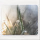 Foto macro de pequeñas perlas de rocío sobre hojas de pasto en un prado en Alemania.